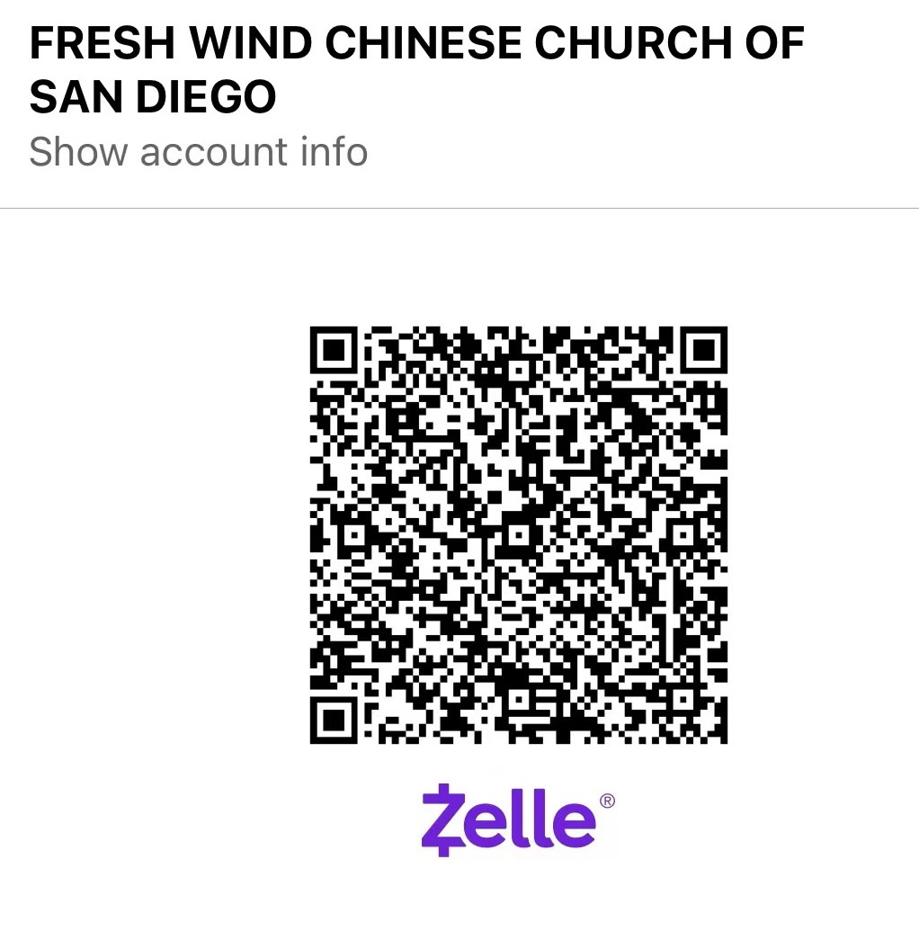 抬头请写:FWCCSD (或Fresh Wind Chinese Church of San Diego);邮寄至 10266 Lone Bluff Dr, San Diego, CA 92127,或投入教会奉献箱中。